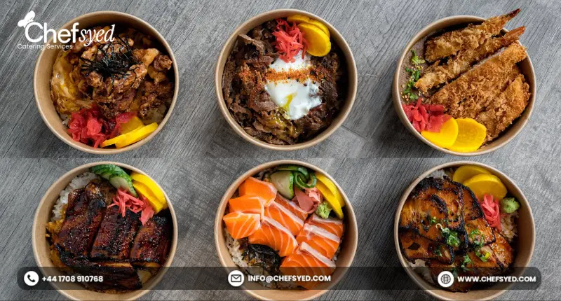 Asian flavours work exceptionally well in bowl catering. Options such as sushi rice bowls, teriyaki chicken, tofu stir-fry, or prawn and vegetable tempura create vibrant, flavour-packed bites. A carefully curated asian bowl menu balances sweet, salty, and umami flavours, offering guests a fresh and dynamic experience.