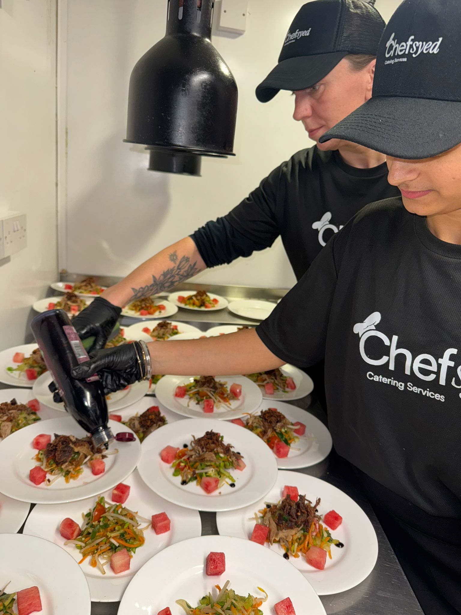 Behind-the-scenes shots of Chef Syed in action — prepping, plating, and perfecting every dish with care.